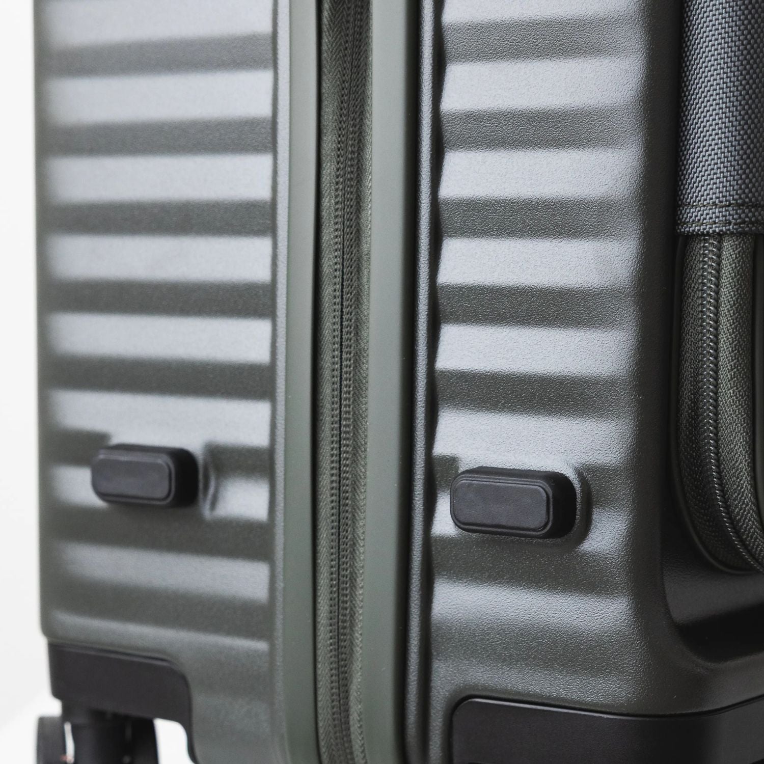 側面に配置された横置き脚が、横向きに置いたときの安定性を確保。地面との摩擦を減らし、キズや汚れから本体を守ります。
