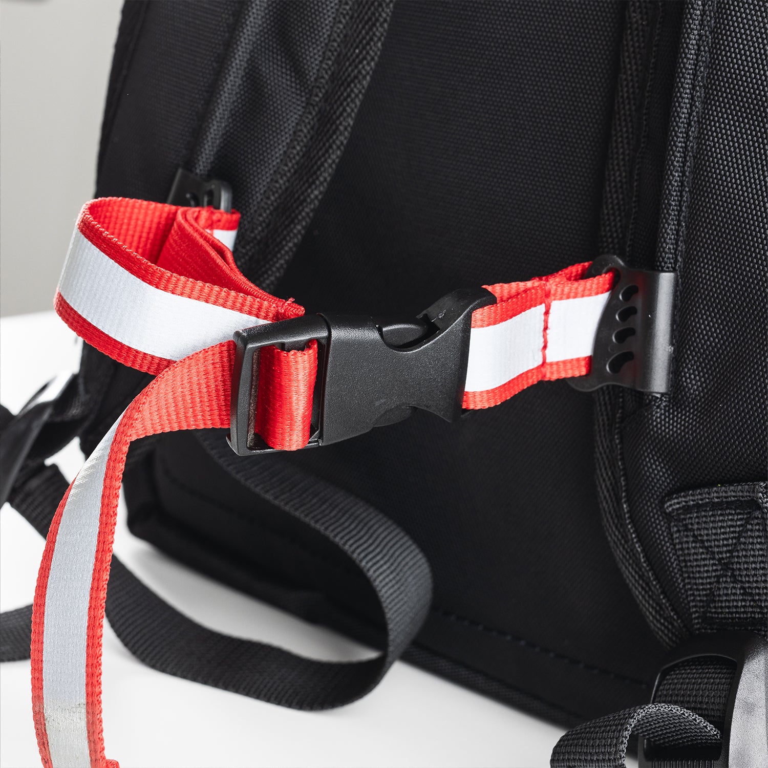 バッグの四面には反射素材を使用したリフレクターを配置。暗い道でも車や自転車のライトをしっかり反射し、夜間の視認性を高めます。